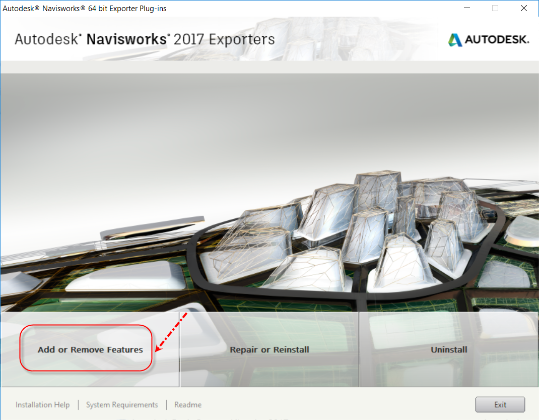 4. หากยังไม่พบคำสั่งดังกล่าว ให้เข้าไปทำการตรวจสอบใน Programs and Features เลือก Navisworks Exporters ตาม Version ที่ลงไว้แล้ว Click Uninstall/Change