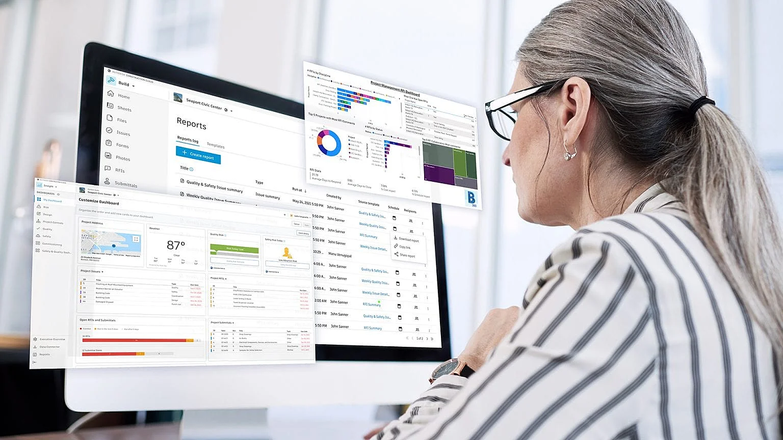 โซลูชันการจัดการการก่อสร้างที่มีประสิทธิภาพ ทำให้คุณเห็นข้อมูลภาพกว้างและข้อมูลเชิงลึกเพื่อประกอบการตัดสินใจได้มากขึ้นไม่ว่าคุณจะต้องทำการตัดสินใจในโครงการเฉพาะทาง หรือกำลังทำการตัดสินใจขั้นสูงและเชิงกลยุทธ์ในทุกโครงการของคุณ ซอฟต์แวร์การจัดการการก่อสร้างที่คุณเลือกใช้ควรสามารถให้ข้อมูลที่จำเป็นแก่คุณได้