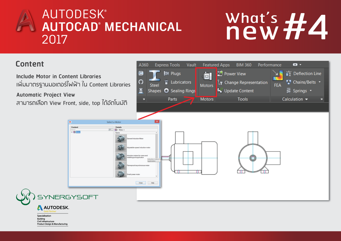 - Include Motor in Content Center เพิ่มมาตรฐานมอเตอร์ไฟฟ้า ในส่วนของ Content Libraries