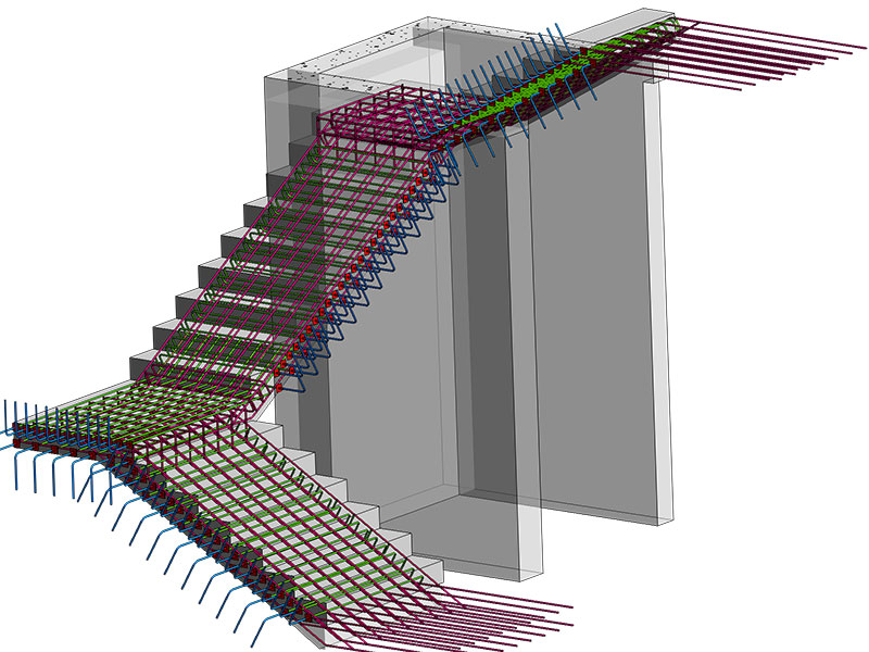 ใน Revit 2020 นั้น สามารถทำการสร้างเหล็กเสริมให้กับModel-In Place ประเภทบันไดได้ ทำให้การสร้างเหล็กเสริมทำได้สะดวกขึ้น ดังรูป