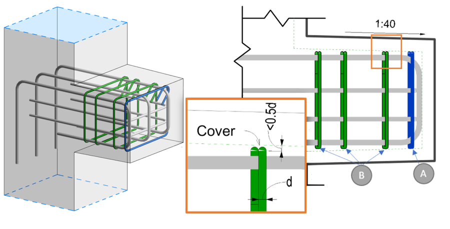 การแก้ไขรายละเอียดของเหล็กเสริมจะทำได้สะดวกขึ้น โดยปรับให้สามารถใช้การ Snap อ้างอิงได้จาก Concrete Covering ทำให้ควบคุมการวางเหล็กเสริมได้ง่ายขึ้น ดังรูป
