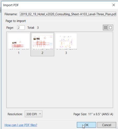 หากผู้ใช้งานต้องการนำเข้าไฟล์ PDF มาใน Revit ในเวอร์ชั่นก่อนหน้านี้ จะไม่สามารถนำเข้ามาโดยตรงได้ ต้องทำการแปลงไฟล์เป็นนามสกุลอื่น ก่อนที่จะนำเข้ามาใน Revit ด้วยคำสั่ง Import CAD หรือ Image ดังรูป