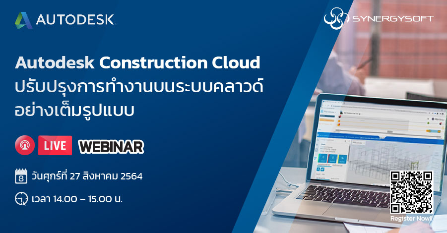 บริษัท ซินเนอร์จี้ซอฟต์ โซลูชั่น จำกัด ขอเรียนเชิญท่านเข้าร่วมสัมมนา e-webinar เพื่อเรียนรู้และเข้าใจหลักการทำงานบนคลาวด์ในแพลตฟอร์มรูปแบบใหม่ นั่นคือ Autodesk Construction Cloud เพื่อให้ท่านสามารถนำไปปรับใช้ในการทำงานร่วมกันภายในทีม หรือระหว่างทีมภายในองค์กร และภายในองค์กร เพื่อให้การดำเนินงานในโครงการใดๆ สำเร็จลุล่วง ส่งมอบงานตามเวลาที่กำหนด และมีประสิทธิภาพ