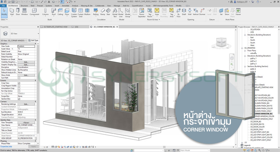 - การสร้าง Family หน้าต่างกระจกเข้ามุม